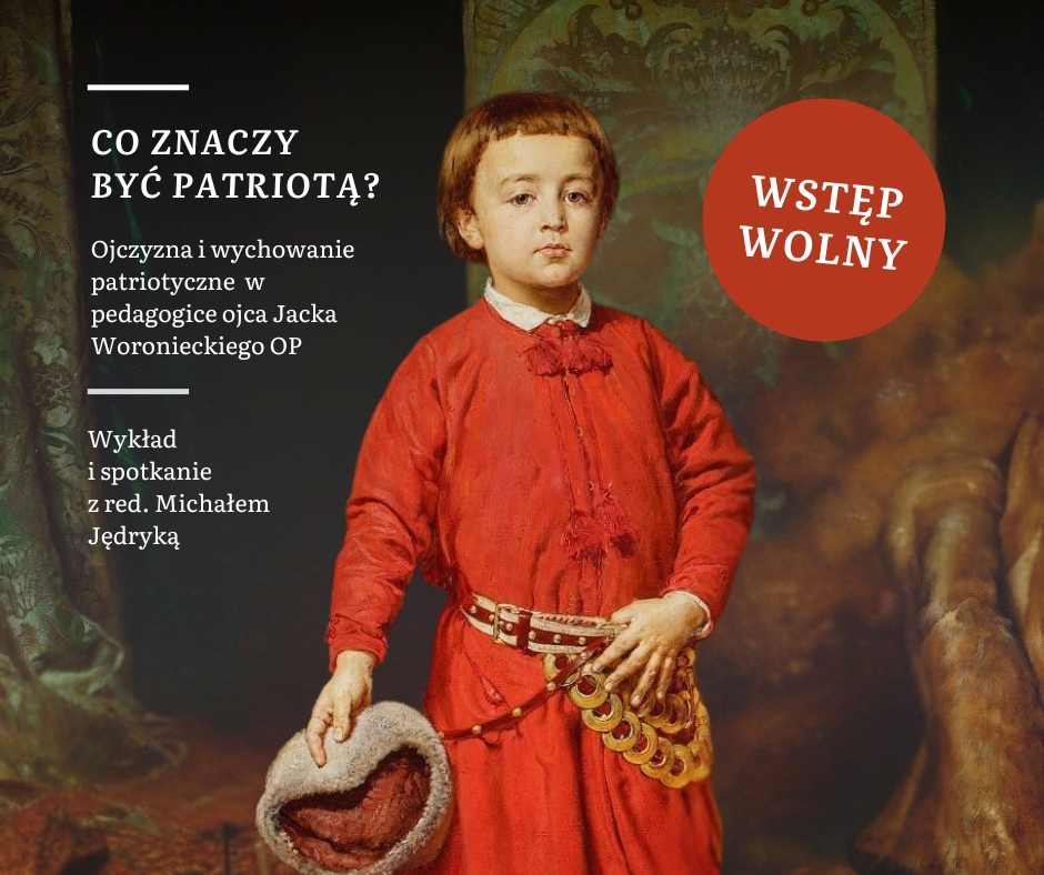 Zapraszamy na wykład Co znaczy być patriotą? Ojczyzna i wychowanie patriotyczne w pedagogice ojca Jacka Woronieckiego OP, który przedstawi red. Michał Jędryka.